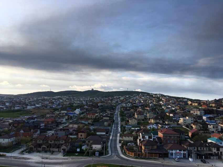 На фотографіях з Анапи видно темну серпанкову завісу в небі. Раніше екологи попереджали про можливі кислотні дощі в регіонах, над якими проходить задимлення.